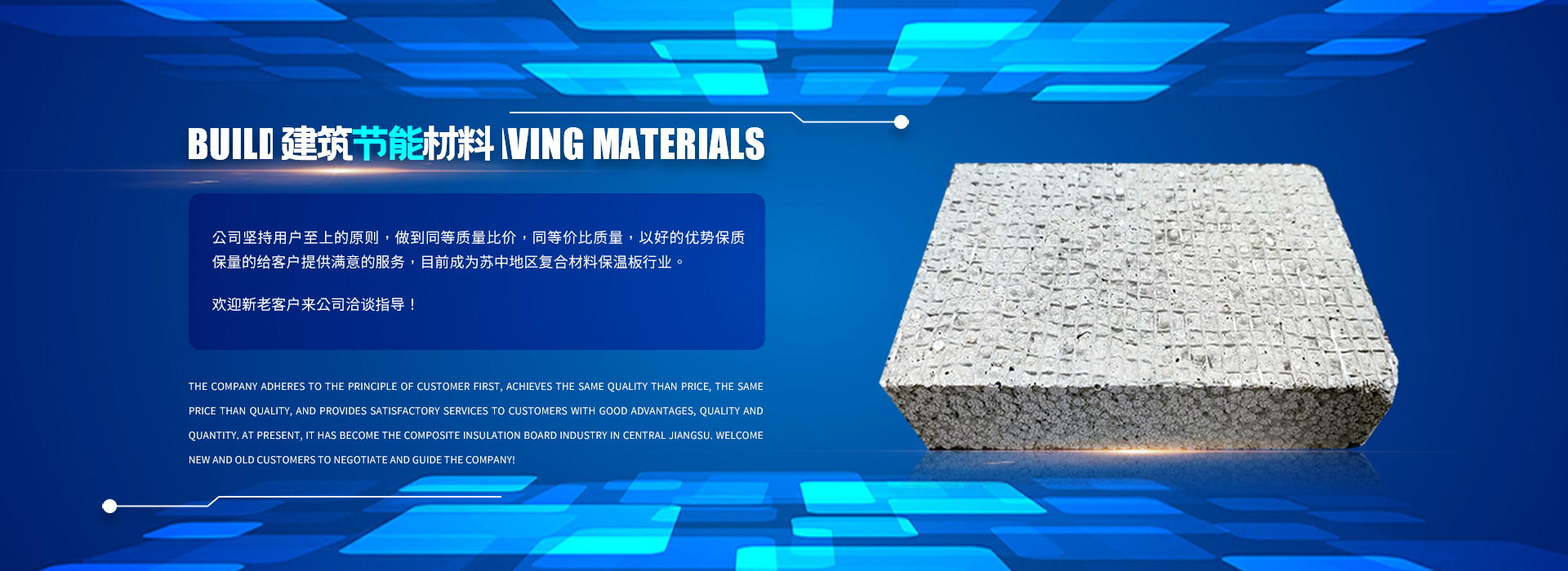 公司堅持用戶至上的原則,做到同等質(zhì)量比價格,同等價格比質(zhì)量,以好的優(yōu)勢保質(zhì)保量的給客戶提供滿意的服務(wù),目前成為蘇中地區(qū)復(fù)合材料保溫板行業(yè)。歡迎新老客戶來公司洽談指導(dǎo)!...